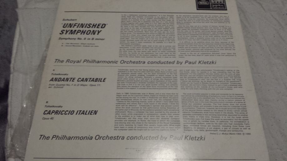 UNFINISHED SYMPHONY FRANC SCHUBERT PYOTR IILYCH TCHAIKOVSKY LP VINIL