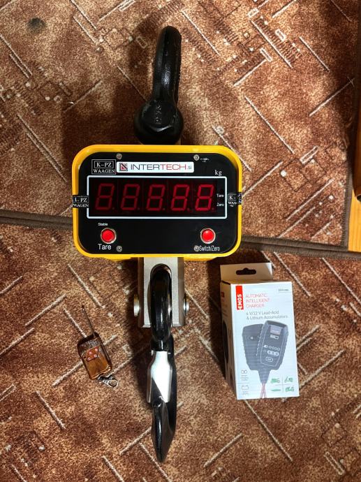 Območje meritev do 5000 kg, minimalna obremenitev 2 kg. Zraven tudi polnilec za akumulator in daljinec za upravljanje z razdalje. Kontakt: 031334632 - dopoldan, 031300991 - popoldan