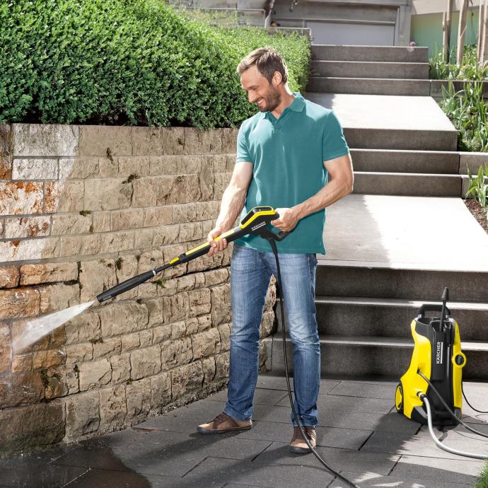 Visokotlačni čistilnik Kächer K 5 Premium Power Control je primeren za različna opravila čiščenja na vrtu in na prostem. Hitro in učinkovito očistite kolesa, vrtno pohištvo in vrtno orodje s pretokom 500 l/h (0,0001 m³/s) in zmogljivostjo 40 m²/h.Nastavitev ravni tlaka z razpršilno cevjo Vario PowerRazpršilna cev Vario Power ima tri stopnje tlaka od 20 do 145 barov, ki jih z vrtenjem cevi zlahka prilagodite površini, ki jo želite očistiti. Izbrano stopnjo tlaka lahko priročno odčitate s prikazovalnika na pištoli Power Control. Poleg tega ima razpršilna cev stopnjo čistilnega sredstva za preprosto nanašanje čistilnih sredstev. Dodatna razpršilna cev je odstranjevalec umazanije, ki z zmogljivo vrtljivo šobo odstrani tudi trdovratno umazanijo.Naprava za čistilno sredstvo Plug'n'CleanZ ustreznimi čistilnimi sredstvi zaščitite in negujte svoje površine ter poskrbite za bolj trajnostno čiščenje. Kärcherjev Plug'n'Clean System je inovativna priključna naprava na zgornji strani tlačnega čistilnika. Sistem omogoča hitro in čisto menjavo plastenk s čistilnim sredstvom. Plastenko priključite obrnjeno na glavo in na razpršilni cevi Vario Power izberite stopnjo za nanos čistilnega sredstva.Visokotlačni čistilnik s priročnimi funkcijamiS priključkom, Quick Connect so gibka cev, pištola in naprava varno povezani, cevi pa je mogoče hitro priklopiti in odklopiti. Visokotlačno gibko cev se lahko navije na boben za gibko cev in tako prihrani prostor. Nizko težišče naprave in dodatna noga zagotavljata potrebno stabilnost. Visokokakovosten aluminijast ročaj je mogoče izvleči in se lahko prilagodi telesni višini uporabnika, ker je zložljiv, pa zagotavlja tudi prihranek prostora v vrtni lopi ali kleti. Parkirni položaj omogoča krajše premore, dodatna oprema pa je hitro na dosegu roke. Aplikacija Kärcher Home & Garden za popolne rezultate čiščenjaV aplikaciji Kärcher Home & Garden boste prejeli koristne nasvete in trike za vašo situacijo čiščenja, predmete, ki jih je treba očistiti, in vašo napravo. Svetovalec za uporabo vam bo pomagal najti pravo stopnjo tlaka in ustrezno čistilno sredstvo. Poleg tega prejmete navodila za sestavljanje in dostop do servisnega portala Kärcher. VsebinaVisokotlačni čistilnik Kärcher K 5 Premium Power Control HomeVisokotlačna pištola G 160 Q Power ControlRazpršilna cev Vario Power VP 145Odstranjevalec umazanije DB 145Visokotlačna cev 10 mPriključki Quick ConnectNaprava za čistilno sredstvo Plug'n'CleanVodno hlajen motorVgrajen vodni filter Adapter priključka za vrtno gibko cev A3/40"