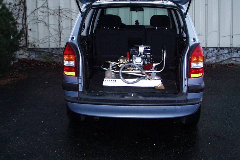 – Neodvisno od električnega omrežja, pogon močne visoko tlačne črpalke (maks. 150bar) preko zmogljivega 4kW (5,5PS) Honda Bencinskega motorja. Potreben bajonetni priklop za vodo.