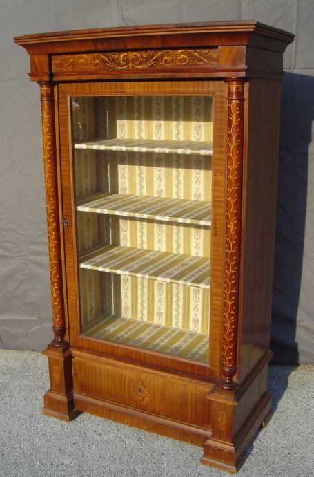 VITRINA BIDERMAJER OREH 19.stol.,VEČ KOSOV STARA STILNA OMARA S STEKLI