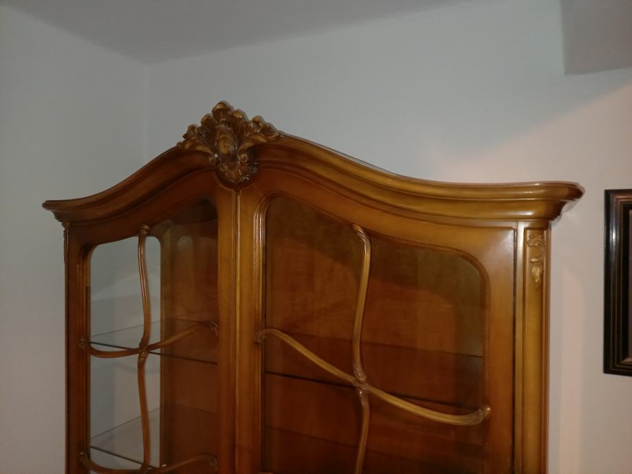 Prodam dobro ohranjeno vitrino Chipendal. Ima zasteklena dvokrilna vrata in zasteklene stranice. V omari sta dve stekleni in ena lesena polica. Mere 120 x 41 x višina 192 cm.Možno jo je kombinirati z stoječo uro iz mojega drugega oglasa. Možna dostava.Telefon 040 843 256