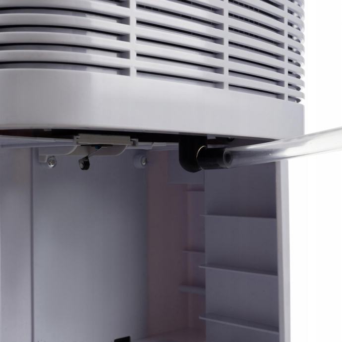 KAPACITETA POSODA + CEV – posoda razvlaževalnika ima prostornino 1800 ml . Zahvaljujoč temu vam ni treba tu in tam izlivati vode . Razvlaževalec lahko enostavno pustite doma več kot dva dni! Dodatna prednost naprave je samodejni izklop po polnjenju rezervoarja. V kompletu je tudi cev, ki jo lahko priključite na razvlaževalec in speljete vodo ven, npr. direktno v umivalnik . Ta rešitev vam bo omogočila, da razvlaževalec pustite na mestu, ki ga redko obiskujete.