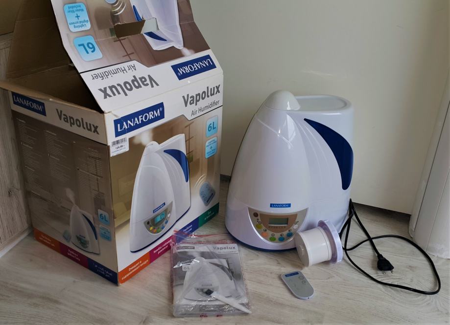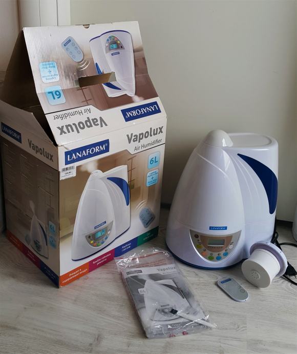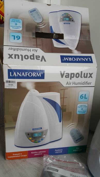 Avtomatski ultrazvočni vlažilnik in ionizator zraka Lanaform Vapo Lux samodejno zaznava in prikazuje vlažnost zraka v vašem prostoru. S pomočjo Vapo luxa po želji regulirate vlažnosti od 40% do 80%. Ima LCD zaslon in daljinski upravljalnik.