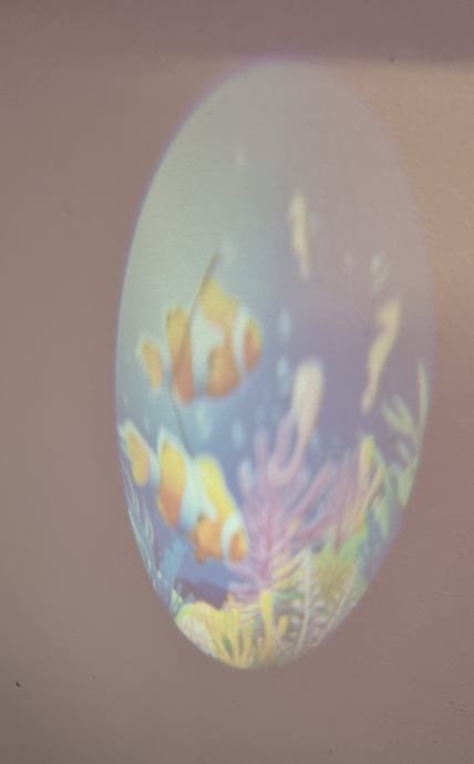 Na strop projektira razne živali in zvezdice. Funkcijo projekcije se lahko izklopi.