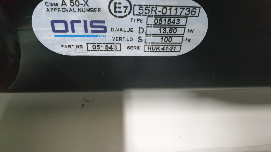Nova, vertikalno snemljiva vlečna naprava ORIS 051-543, za CITROEN Space Tourer, Dispatch in Jumpy, od letnika 2016 dalje, z univerzalno 13 pinsko elektriko, montažo in vpisom v homologacijski karton.