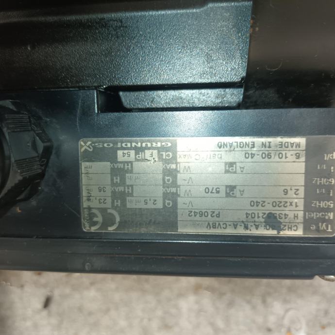 el moč 570W, 1x230V, I=2,6A, IP 54, pretok 2,5m3 na višino 24m.
