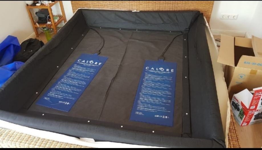 -1.8 x 2.1 m ima podstavek iz iverne plošče.Dve ločeni vodnim jedri z dvema grelcema. Je kompletna in se prodaja samo v kompletu