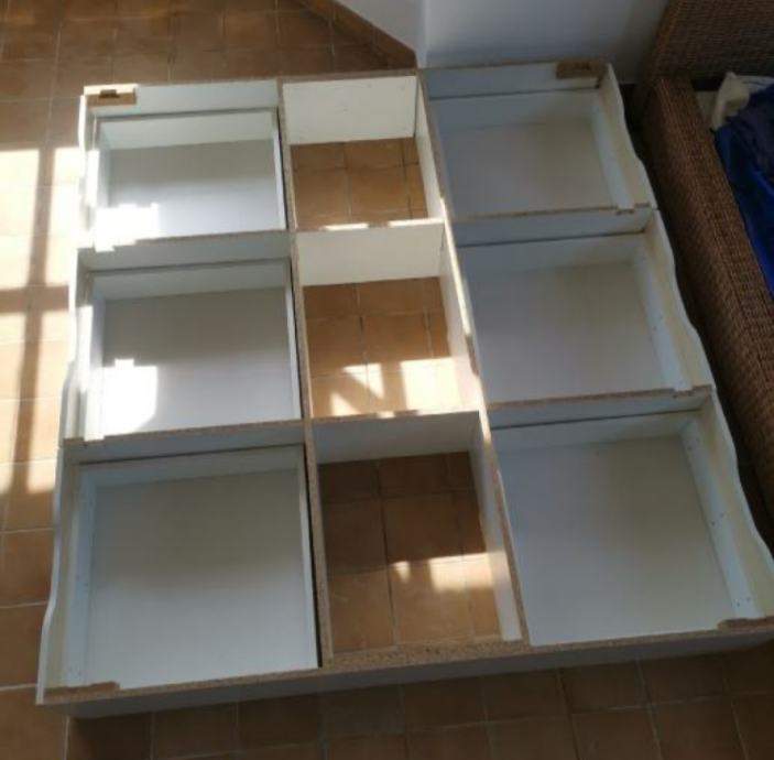 - 1.8 x 2.2 m ima podstavek 6 predalov iz vsake strani po 3. Dve ločeni vodni jedri z dvema grelcema. Je kompletna in se prodaja samo v kompletu vsaka postelja.