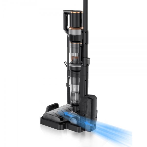 Po končanem čiščenju postavite HW10 Pro na stojalo, pritisnite gumb in enostavno aktivirajte samočistilni program, ki vam omogoča, da sperete valj in ostale komponente tako, da le-te ostanejo čiste za naslednjo uporabo. Ko je funkcija čiščenja končana, JIMMY HW10 Pro samodejno aktivira tudi zračni curek, ki posuši valj s tem prepreči neprijetne vonjave.