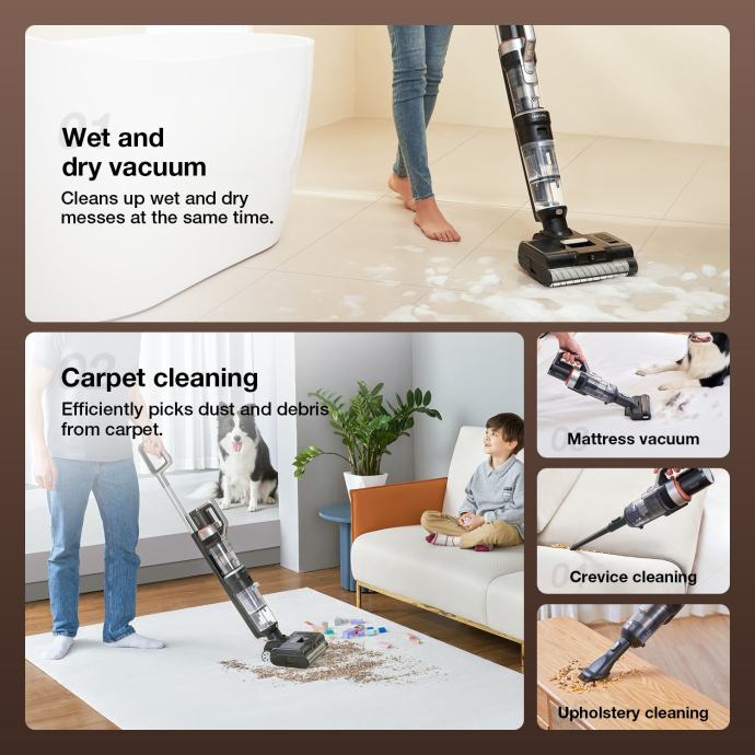 Predstavljamo najnovejši brezžični pokončni sesalnik JIMMY HW11 Pro 4v1, izjemno zmogljiv in vsestranski čistilni pripomoček, ki omogoča štiri funkcije v enem: sesanje, pomivanje, sušenje in samodejno čiščenje. Ta inovativni sesalnik je zasnovan za enostavno čiščenje različnih površin, vključno s talnimi oblogami, preprogami, posteljami in kavči.