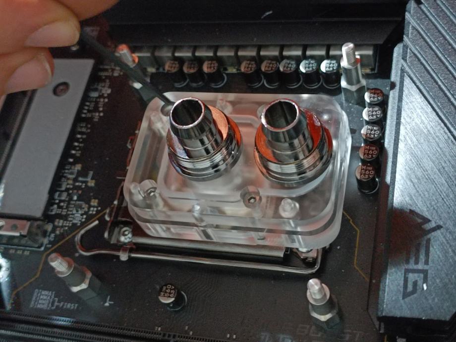 Ročno izdelan vodni blok za direct die hlajenje procesorja (Intelk 13. generacija), proizvajalca Supercoolcomputer. Je v odličnem stanju in ob pravilni montaži izrazito zniža stopinje procesorja.