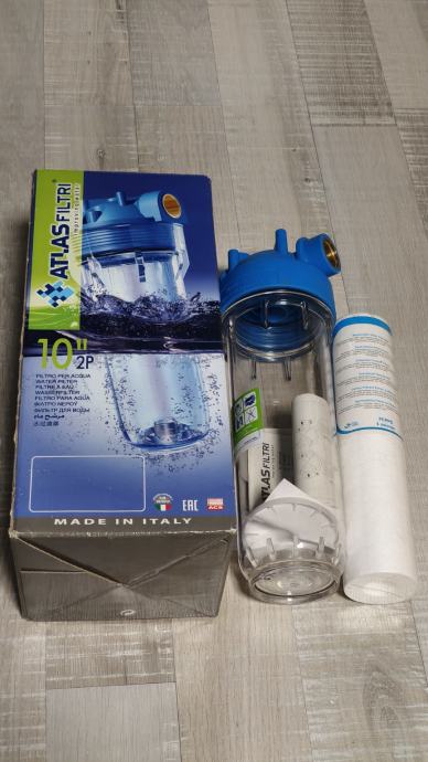 Prodam kakovosten vodni filter ATLAS FILTRI 10", italijanske izdelave, primeren za filtracijo pitne vode v hiši, stanovanju, vikendu, avtodomu ali delavnici.