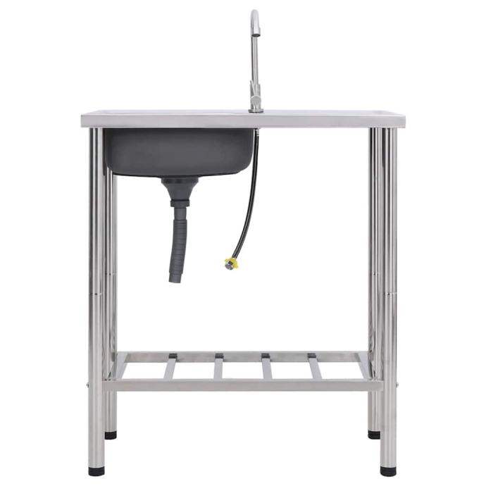 vidaXL Pomivalno korito za kamp enojno korito s pipo nerjaveče jeklo