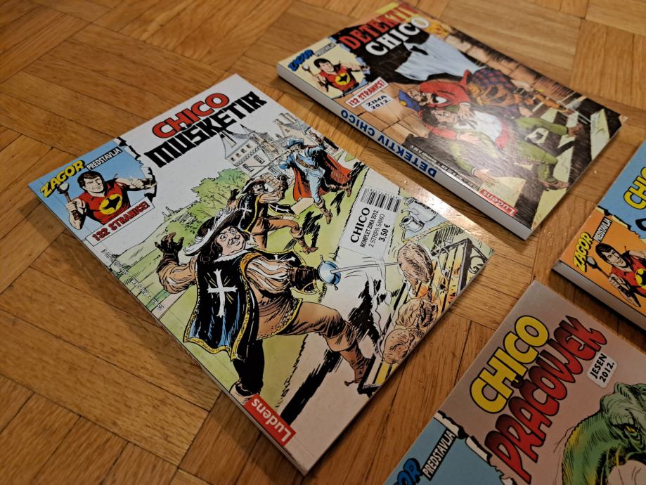 - CHICO MUŠKETIR - nalepka na sprednji platnici, ostalo brezhibno.