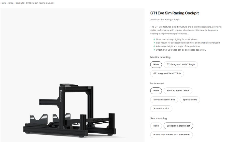 - SIMLAB GT1 EVO cockpit, dodatno še bracket set in slider,