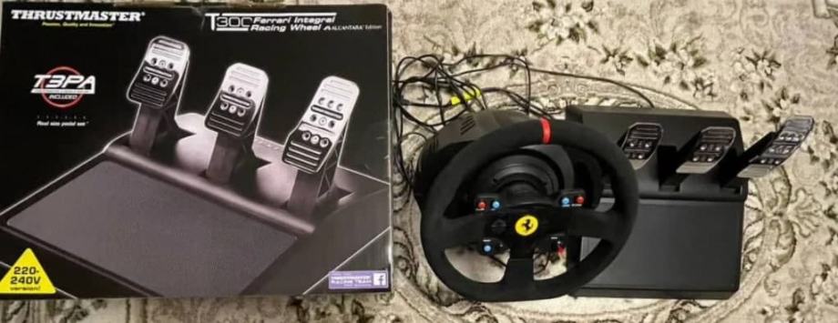 1. Volan s pedali Thrustmaster T300 Ferrari Integral Rw Alcantara. Primeren za igre na PS4/PS3/PC. Ni popravljen in ni odprt (vsa tesnila so na mestu). Popolnoma delujoč, novo stanje. Proizvedeno aprila 2021, kupljeno 15.08.21