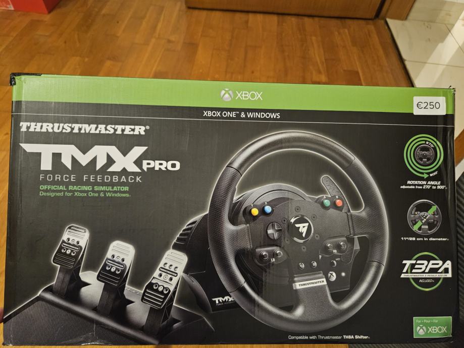 Prodam volan trustmaster TMX z pedali T3PA ADD-ON v dobrem stanju povsem delujoč. Je najprimernejši kot začetniški volan z zelo lahko nadgradljivostjo. Meni je izvrstno služil, prodajam pa ga, ker sem kupil drugega. Združljiv je z: PC / Xbox One / Xbox Series XS ima močan Force Feedback za realističen občutek vožnje kot zasuka do 900 stopinj z možnjosto prilagoditve na poljubni kot. Kovinske pedale zelo stabilne in nastavljive.