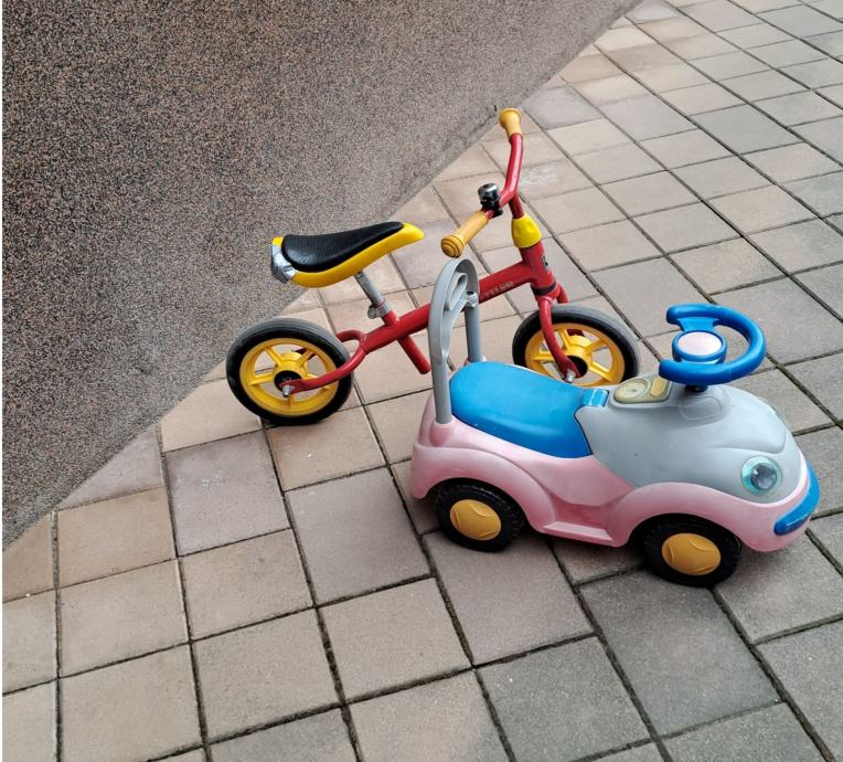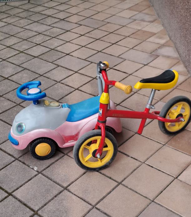 Prodam dva poganjalčka v kompletu (varianti kolo in avtomobilček). Oba poganjalčka sta delujoča. Možen nakup posameznega poganjalčka.