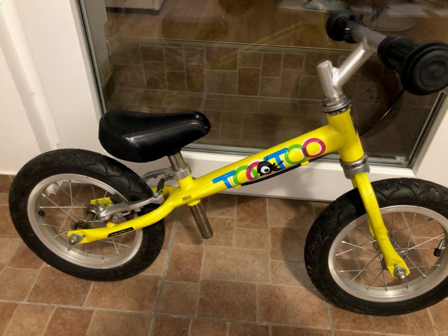 Prodam solidno ohranjen poganjalec za otroke, starosti 2+, z napihljivimi 12˝ gumami in zadnjo zavoro.