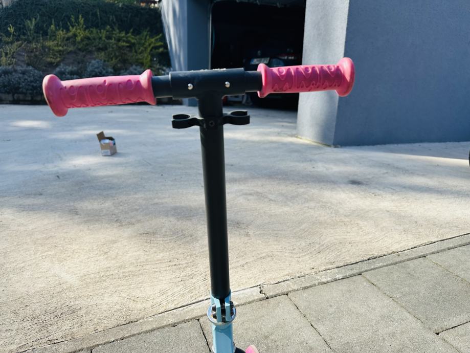 Prodamo prvi skiro za otroka (2-3+ leta). Je zelo stabilen, saj ima dve kolesi spredaj in zadaj prav tako. Kolesi zadaj in spredaj se lahko montira narazen (za vecjo stabilnost) ali skupaj (napredno).