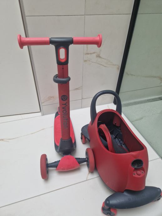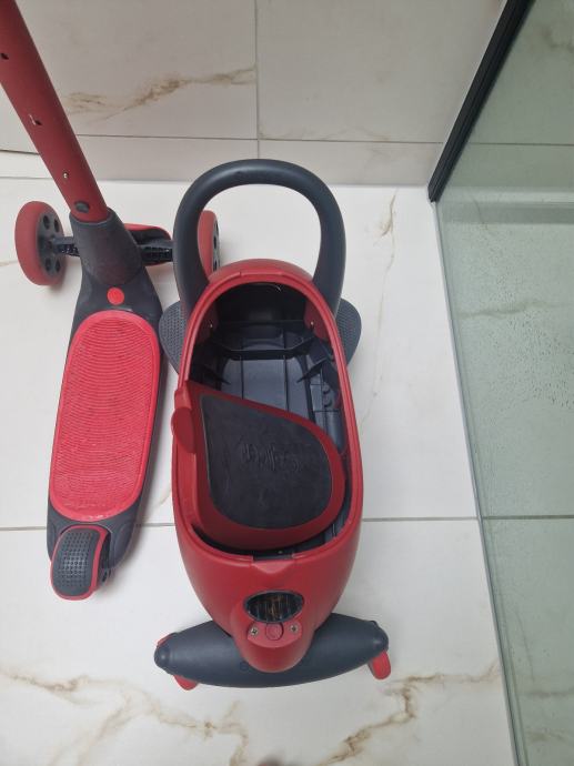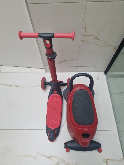 Primerno za dva otroka, saj se razdeli v poganjalca in v skiro. Primerno že od trenutka, ko otrok stabilno sedi, daj lahko poganjalca upravljamo. Skiro je zelo stabilen in raste z otrokom, tako da je primeren več let.