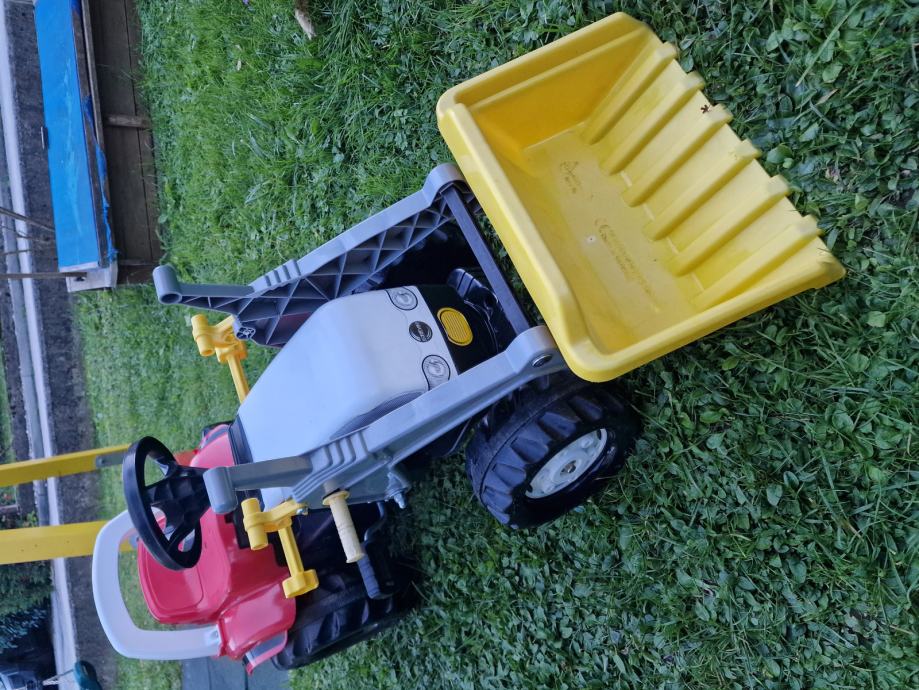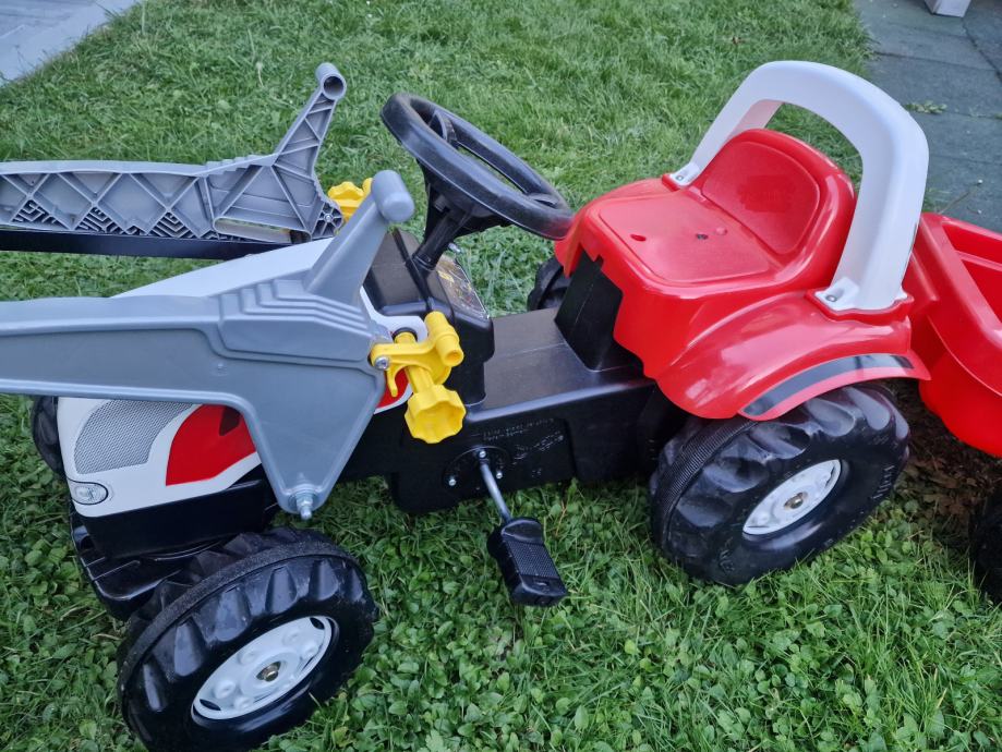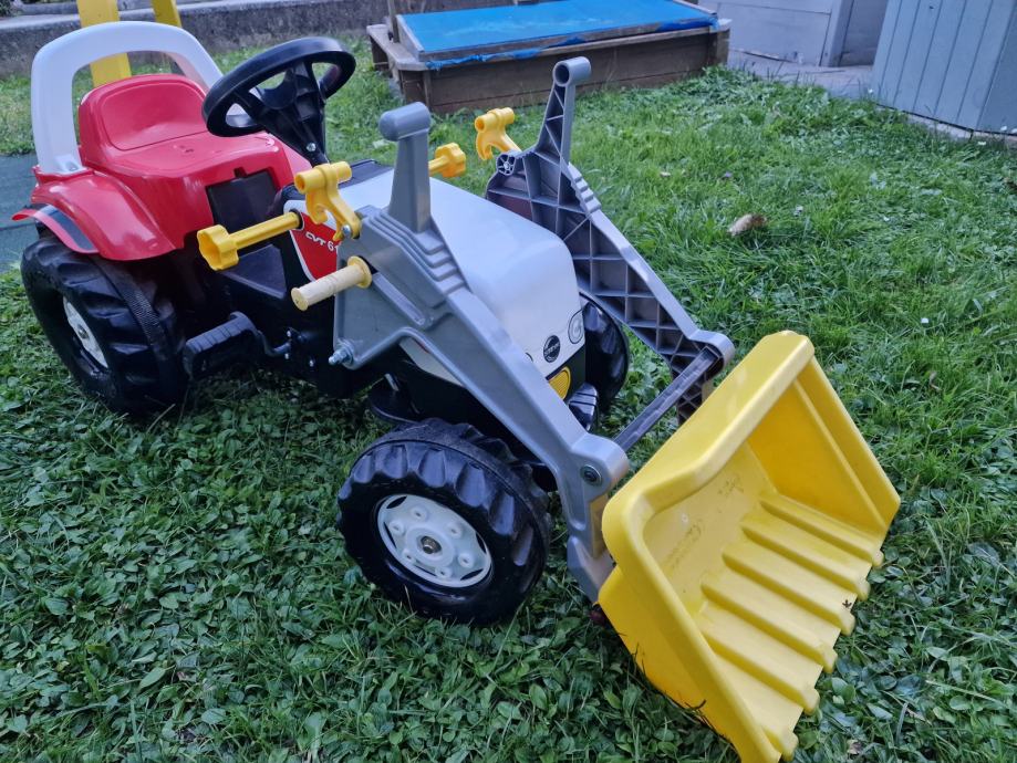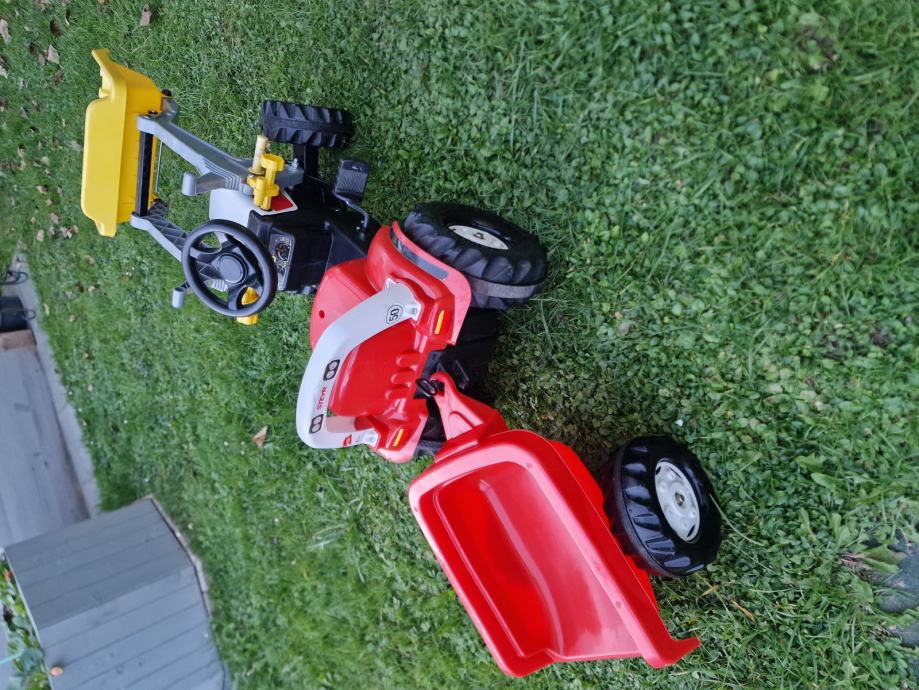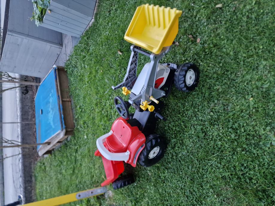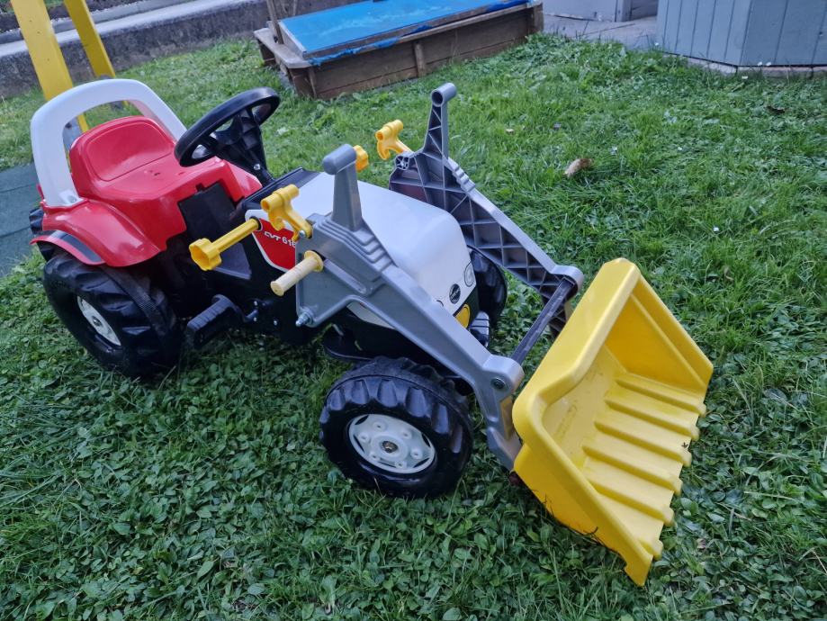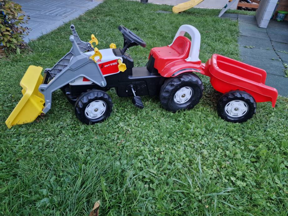Prodam rabljen, dobro ohranjen otroški traktor RollyKid Steyr. Traktor ima nakladalko in prikolico ter je primeren za otroke od 2,5 let naprej.