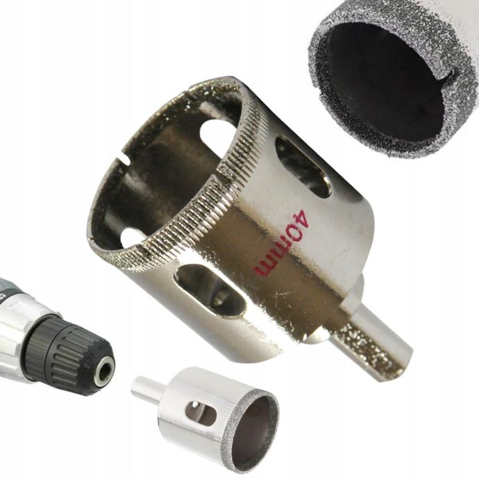 Diamantni sveder za ploščice se uporablja za “mokro” brezudarno vrtanje v kamenino, keramiko, marmor, porcelan in trde ploščice.