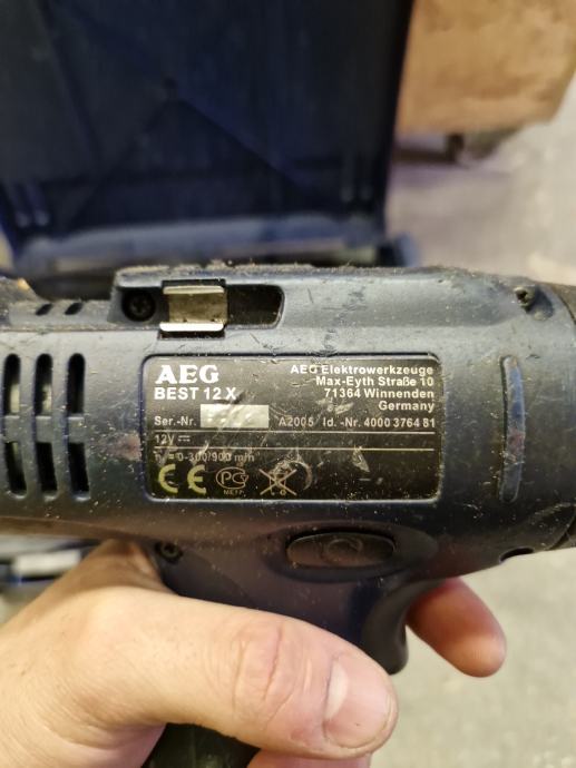Prodam rabljen vrtalnik AEG BEST 12X v kovčku z polnilcem. Vrtalnik deluje. Baterije so nedelujoče. Kovček je zraven.