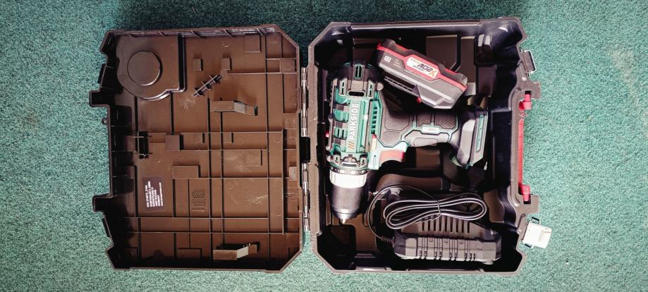 Vrtalnik deluje brezhibno, baterija dolgo drži, komplet je neuporabljen.