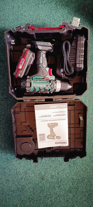Prodam komplet Parkside akumulatorski vrtalnik z baterijo, polnilcem in škatlo orodja.