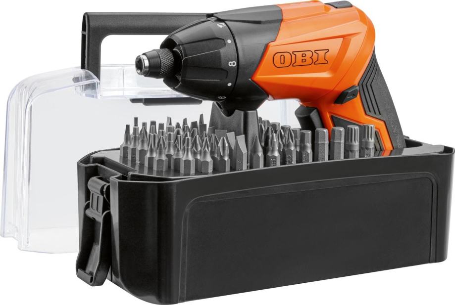 OBI Akumulatorski vijačnik BASIC BOX s 3,6 V in 1,3 Ah Li-ionskim akumulatorjem je kompakten in vsestranski pomočnik za vaše projekte doma in na vrtu. Zahvaljujoč USB-priključku tipa C lahko vijačnik polnite priročno in prilagodljivo. Ne glede na to, ali privijate ali odvijate vijake, vrtljiva funkcija v levo in desno vam vedno omogoča natančno delo. Posebej praktična je vrtalna glava, ki jo je mogoče namestiti navpično, kar vam odpira nove možnosti v tesnih delovnih prostorih. S 54 biti v običajnih velikostih ste pripravljeni na vsako nalogo - vse lepo pospravljeno in hitro pri roki.Natančnost in udobje pri vsaki uporabiVarno in natančno delajte tudi v temnih kotih: vgrajena LED-osvetlitev optimalno osvetli vaše delovno območje. In če potrebujete več svetlobe, je svetilka, integrirana v ročaj, pametna dodatna funkcija. Dobava poteka v robustni plastični transportni škatli z ročajem in prozornim pokrovom, ki ne zagotavlja le varnega shranjevanja, ampir vam tudi omogoča hiter pregled nad vsebino.