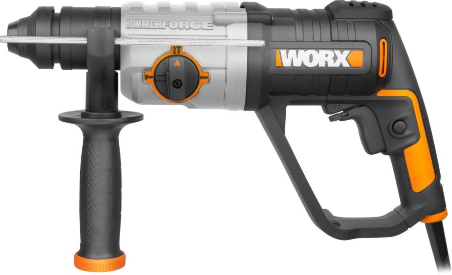 Worx vrtalno kladivo Wx339 združuje 3 funkcije v eni napravi, klesanje, vrtanje in udarno vrtanje. Zmogljivi 800-W motor, brezstopenjska nastavitev števila obratov in kovinski omejevalnikom globine poskrbijo za visoko stopnjo nadzora nad strojem in s tem natančno opravljeno delo.Z uporabo stikala za neprekinjeno delovanje lahko delo opravljate brez prekinitev, pri tem pa za udobje poskrbi mehki ročaj. Z vpenjalno glavo SDS-Plus lahko nastavke ali svedre menjate hitro in preprosto.