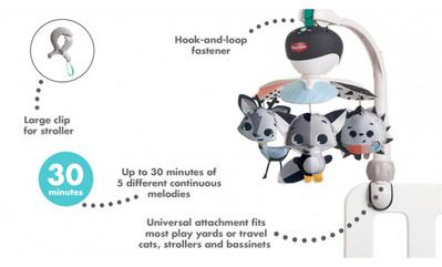 Portable Music Mobile for Pram, Multi-Use with 3 Connectors, 5 Melodies, 30 Minutes of Continuous Music, Magical Tales
