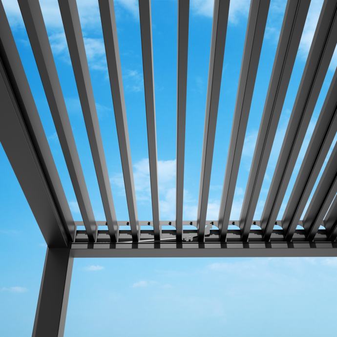 Vrhunska aluminijasta bioklimatska pergola z dvoslojnimi rešetkami.