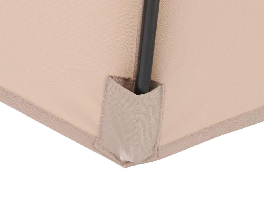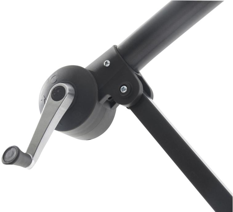 Konzolni senčnik Alvarado v klasični, okrogli obliki navdušuje s kakovostno izdelavo. Kot dekorativen senčnik na vaš vrt in teraso prinaša sredozemski pridih.Senčnik s stranskim drogomStranski drog prihrani prostor, vam pa pod senčnikom ostane velikodušno odmerjena površina. Sem lahko preprosto postavite svoje ležalnike ali celotno garnituro za uživanje, sprostitev in klepet v senci.Vrtljiv konzolni senčnik z ročico Konzolni senčnik vam ponuja številne funkcije, s pomočjo katerih je mogoče prilagoditi območje sence. Ta senčnik lahko po želji sukate in si tedaj, ko je sonce nizko, nastavite želeni kot nagiba. Odprtina za prezračevanje na vrhu zagotavlja dobro kroženje zraka. Senčnik lahko preprosto odprete in zaprete z vgrajenim ročičnim mehanizmom. V razprtem stanju ima premer 300 cm.Lahka in trpežna zaščita pred soncemKar zadeva izdelavo in izbiro materialov, senčnik navduši s svojim drogom in oporniki iz lahkega, stabilnega in prašno lakiranega aluminija v barvi antracita. Trpežna prevleka iz poliestrske tkanine v bež barvi je snemljiva in pralna. Zahvaljujoč zaščitnemu faktorju UV 50+ vam senčnik zagotavlja zanesljivo zaščito tudi pri močni sončni svetlobi.Konzolni senčnik vključno s stojalomSenčnik je opremljen s stojalom za plošče v obliki križa. Za več trdnosti je treba stojalo obtežiti s štirimi betonskimi ploščami velikosti 50 cm x 50 cm. Plošče so v vaši trgovini OBI na voljo posebej.