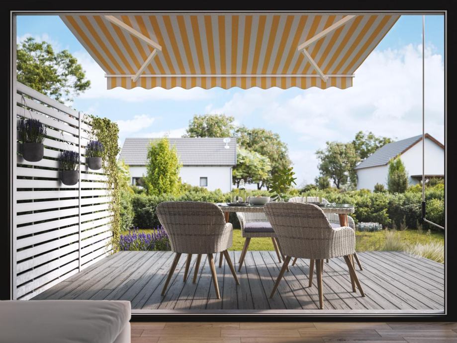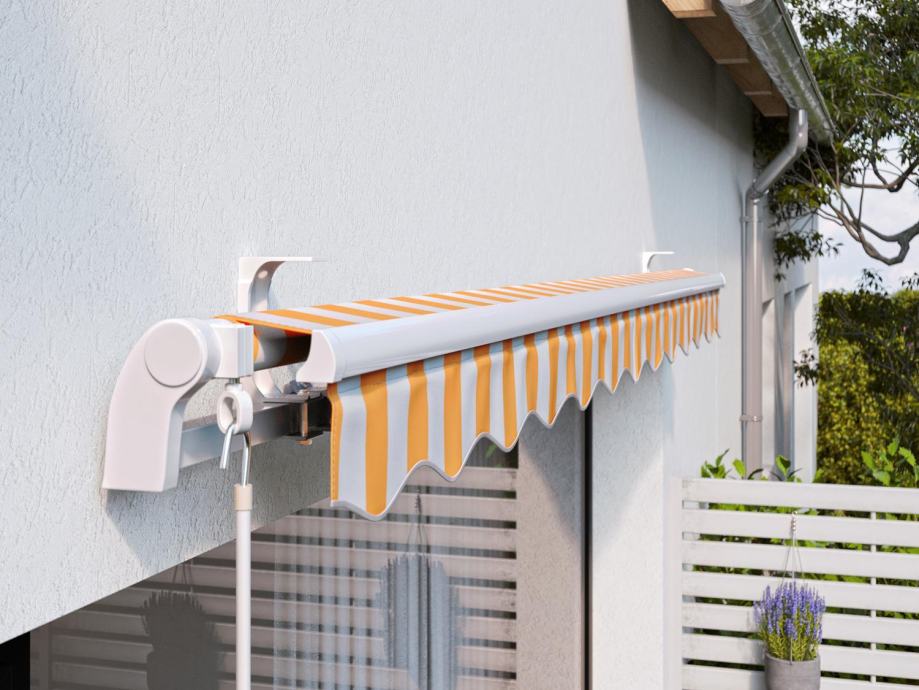 Markiza s pregibnimi rokami Aventura 300 cm x 200 cm rumeno-bela črtas