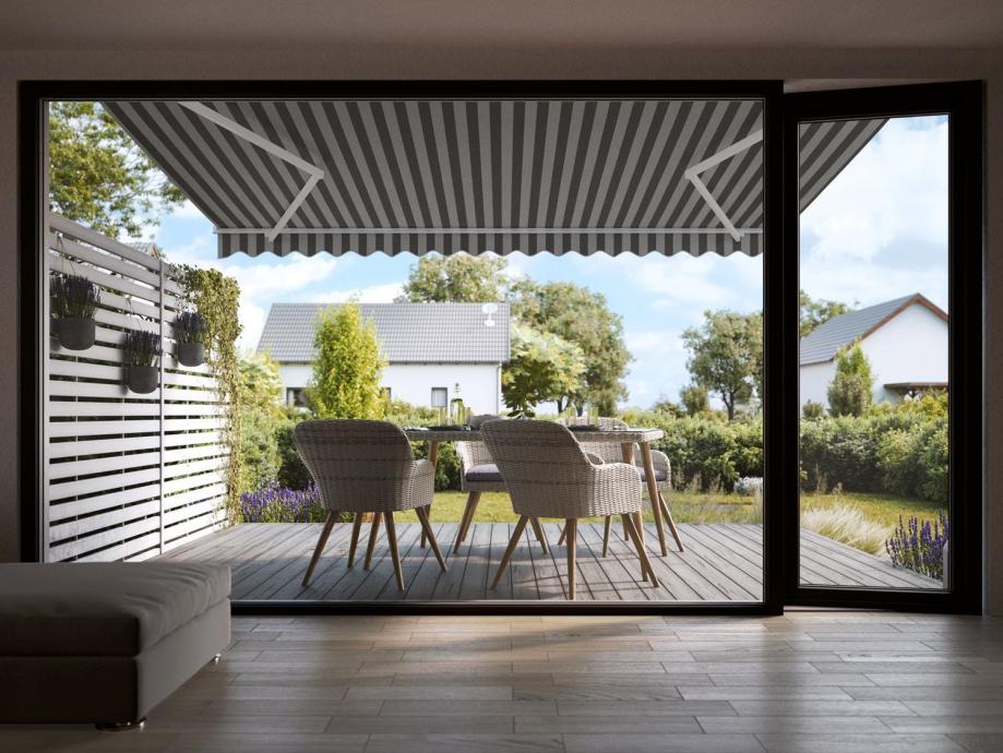 Markiza s pregibnimi rokami Aventura 400 cm × 250 cm, sivo bela črtast