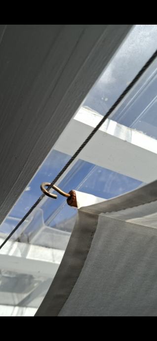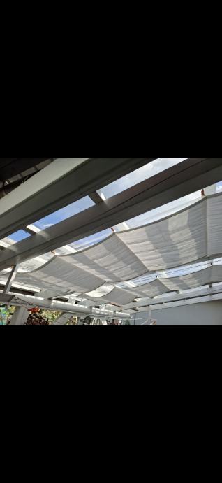 Prodam senčilo za teraso, ki učinkovito ščiti pred vročimi poletnimi žarki. Senčilo je v dobrem stanju in zagotavlja prijeten hlad na vaši terasi. Material:drap blago,lakirane lesene palice, žica 2 mm,vijaki...,skratka vse za takojšno montažo.Deli so oštevilčeni,blago oprano,zlikano.Za širino med špirovci ca.92 cm.Pošljem po ceniku Pošte Slovenije.
