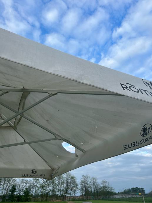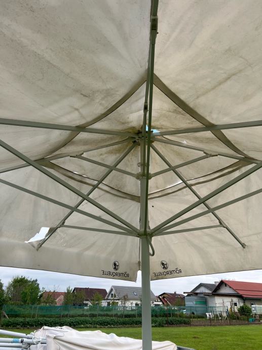 Prodam veliki senčnik , večji je velikosti približno 3,5 x 3,5 (visine 3,7m) in drugi pa je velikosti 3 x 3 (visine 2,9m). Ogrodje je v odličnem stanju , POZOR: platno je potrebno obnove ali zamenjave.