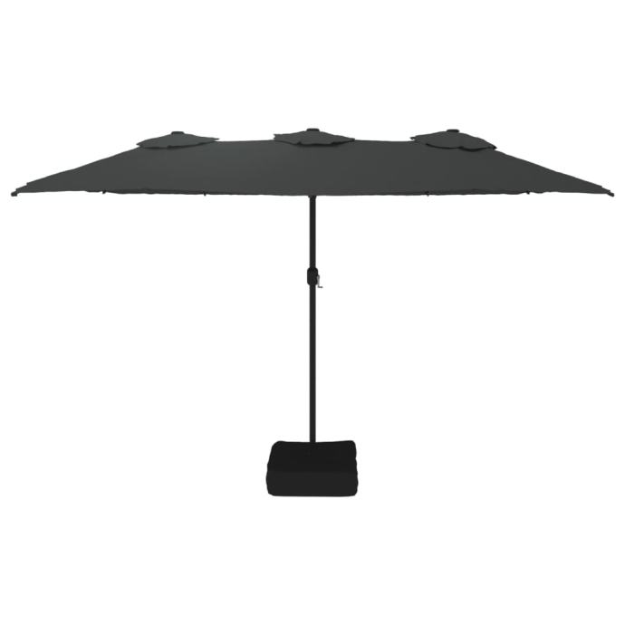 Ta eleganten dvojni senčnik je odlična izbira za zagotavljanje sence in zaščito pred škodljivimi UV žarki. Trpežen material: Vrtni senčnik je izdelan iz poliestra, ki ščiti pred UV-žarki in ne bledi, zato zagotavlja optimalno zaščito pred soncem in je enostaven za čiščenje.Robusten okvir: Zaradi močnega železnega stebra s prašnim premazom in osmih trpežnih reber je vrtni senčnik zelo stabilen in trden.Mehanizem z ročico: Zahvaljujoč ročici se senčnik enostavno odpre in zapre.Močen podstavek: Podstavek z vrečo peska poskrbi, da je senčnik trden in stabilen tudi v močnem vetru in močnem dežju.