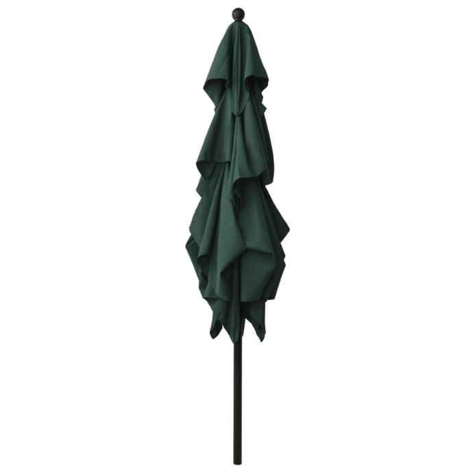 Ta vrtni senčnik je popolna izbira za zaščito pred škodljivimi UV žarki in vlago, še posebej na vaši verandi, terasi ali vrtu. Zunanji senčnik je izdelan iz nebledljivega poliestra z UV zaščito, zato lahko zagotovi optimalno zaščito pred soncem. Prašno premazan aluminijast drog in rebra zagotavljajo stabilnost. Zahvaljujoč ročici in možnosti nagibanja je senčnik zložljiv in prenosen. Postavite ga lahko na podstavek za senčnik ali na sredino mize, če ima odprtino za senčnik.