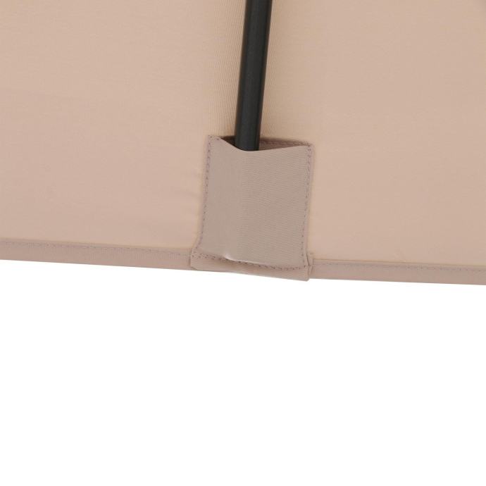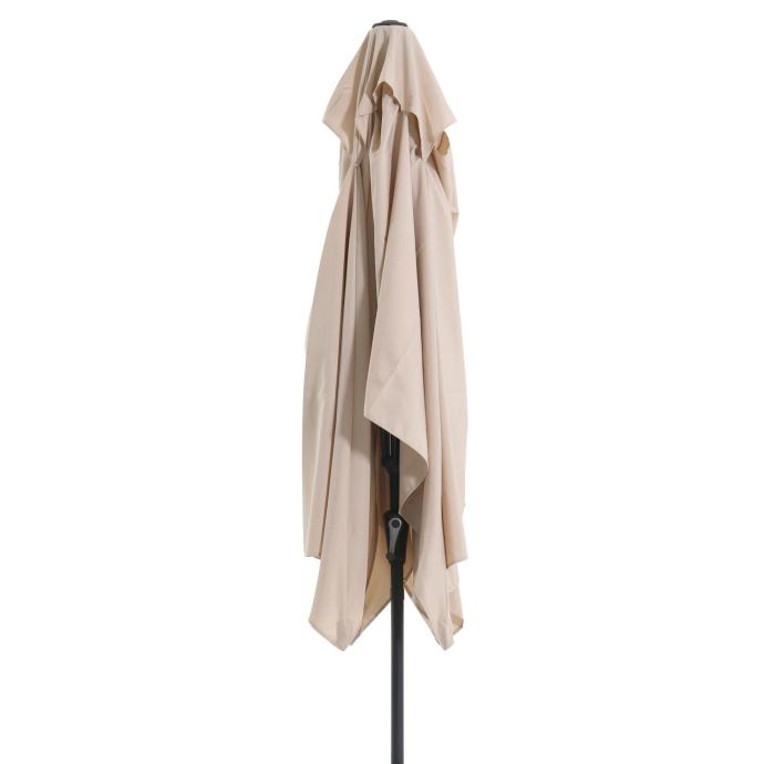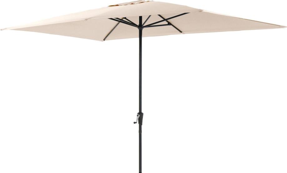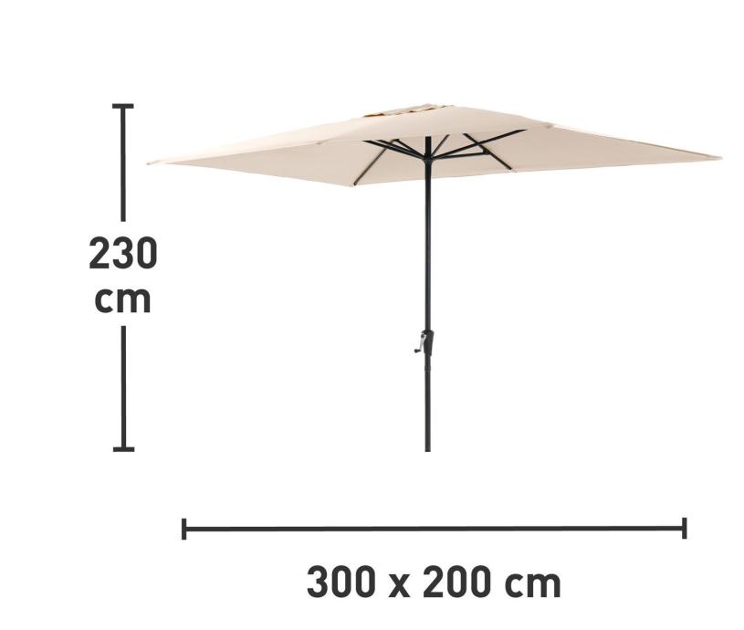 Kakovosten vrtni senčnik Honolulu je kot nalašč za zagotavljanje sence na vaši terasi ali vrtu. S svojim velikodušno odmerjenim premerom in visokim zaščitnim faktorjem zagotavlja, da lahko poleti brezskrbno preživljate čas na prostem. Velikodušno dimenzioniran senčnik z ročicoSenčnik lahko z ročičnim mehanizmom raztegnete do dimenzij 200 cm x 300 cm. Idealen je za vrtne mize, ki imajo na sredini odprtino za dežnik. Podstavek senčnika tako nikogar ne moti, vsi sedeži za mizo pa so ob tem prijetno zasenčeni.Stabilen vrtni senčnik s faktorjem UV-zaščite 50+Nosilec senčnika je izdelan iz lahkega in trdnega aluminija, roke pa iz robustnega jekla v barvi antracita. Tudi ob močnejšem vetru zagotavlja sredinsko nameščeni drog premera Ø 38 mm stabilnost in zanesljivost. Trpežna prevleka iz 100-odstotne poliestrske tkanine v bež barvi je snemljiva in pralna. S faktorjem zaščite UV 50+ zagotavlja zanesljivo zaščito pred soncem.Vklj. s torboZa zanesljivo trdnost svojega vrtnega senčnika potrebujete podstavek premera 38 mm in mase med 30 kg in 35 kg. Ta vam je posebej na voljo v trgovini OBI. Torba za shranjevanje, s katero lahko senčnik tudi obesite, da prihranite prostor, je že v paketu.