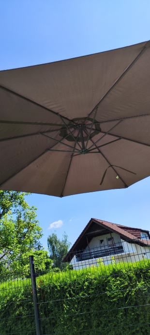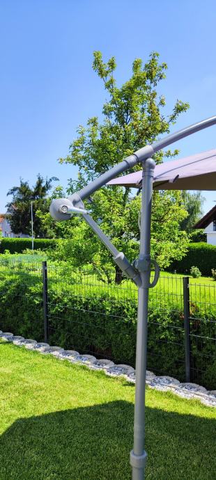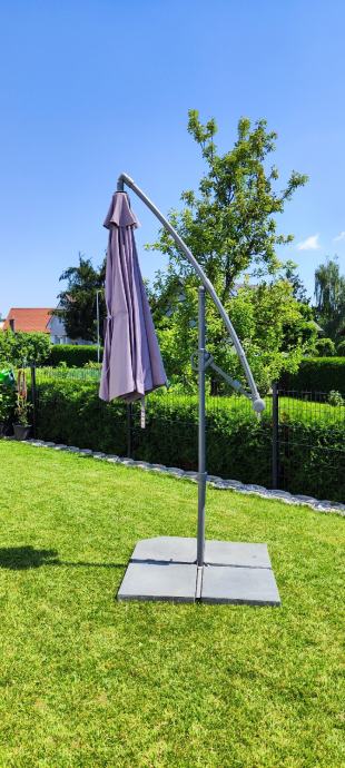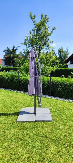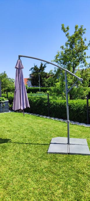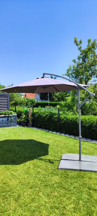 Prodamo 2 leti star senčnik, ki je bil zelo malo uporabljen in je popolnoma brezhiben. Zraven so 4 betonske plošče za obtežitev senčniki (ena je malo poškodovana).