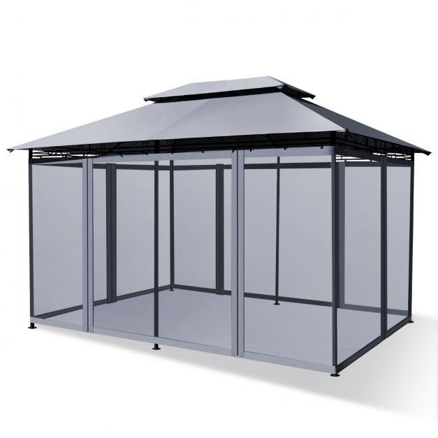 Izdelan je iz robustnega jeklenega okvirja in poliestra, odpornega na sonce, zaradi česar je zelo vzdržljiv. 6 mrežastih sten vas ščiti in zagotavlja visoko stopnjo udobja. Enostavno jih je mogoče odpreti, zapreti in odstraniti z zadrgami. Gazebo je primeren za vrtove, terase ali celo bazene. Tako se lahko čudovito sprostite.