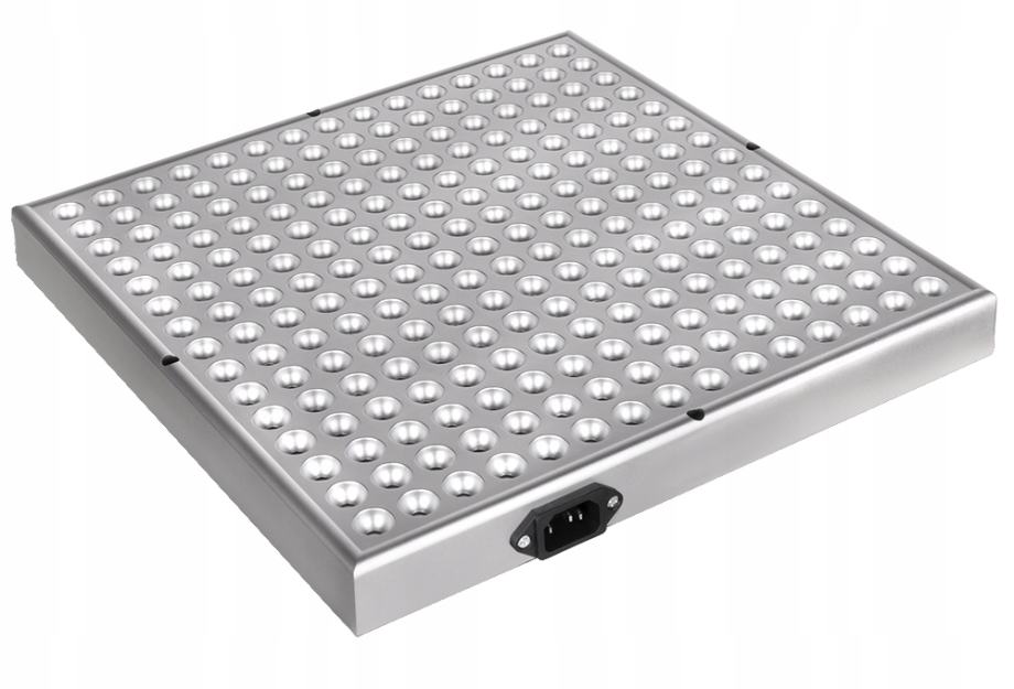 SPECIFIKACIJA – moč: 36 W; število LED: 225 = 165 rdečih + 60 modrih; napajanje: AC 220 ~ 240 V / 50 ~ 60 HZ; dimenzije: 310 x 310 x 35 mm; teža z embalažo: 1,077 kg.