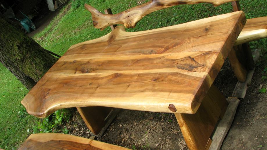 Lesena vrtna miza in 2 klopi - masivni oreh unikat