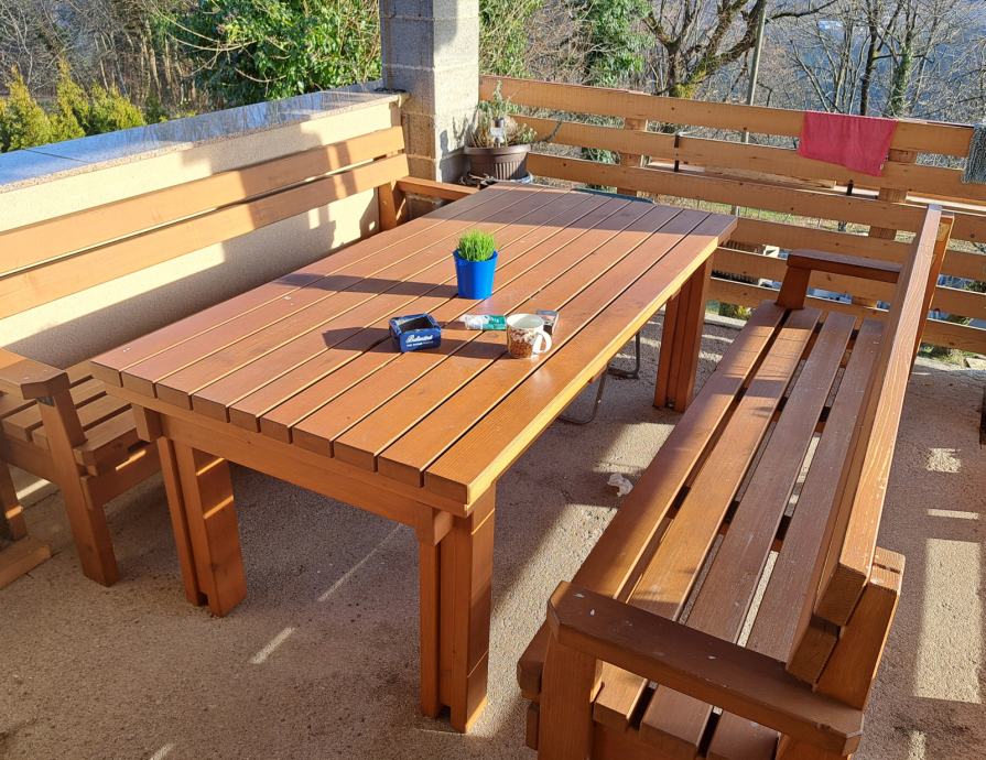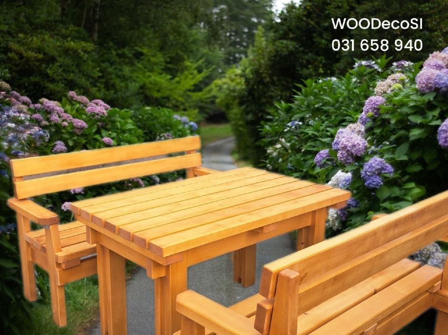 Izdelujemo masivne vrtne garniture iz smrekovega lesa.
