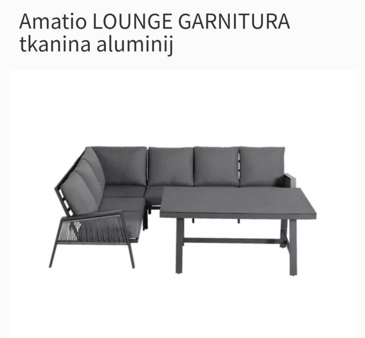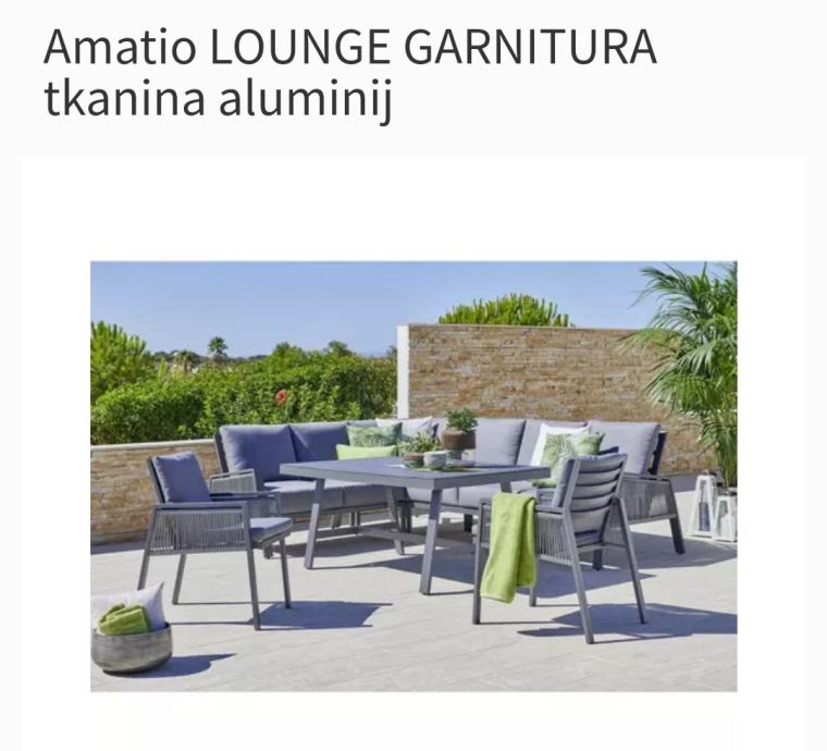 Znamka Amatio predstavlja lounge garnituro v moderni izvedbi. Set sestavlja steklena miza prevlecena z nalepko, ki spominja na videz kamna in velika kotna sedežna.