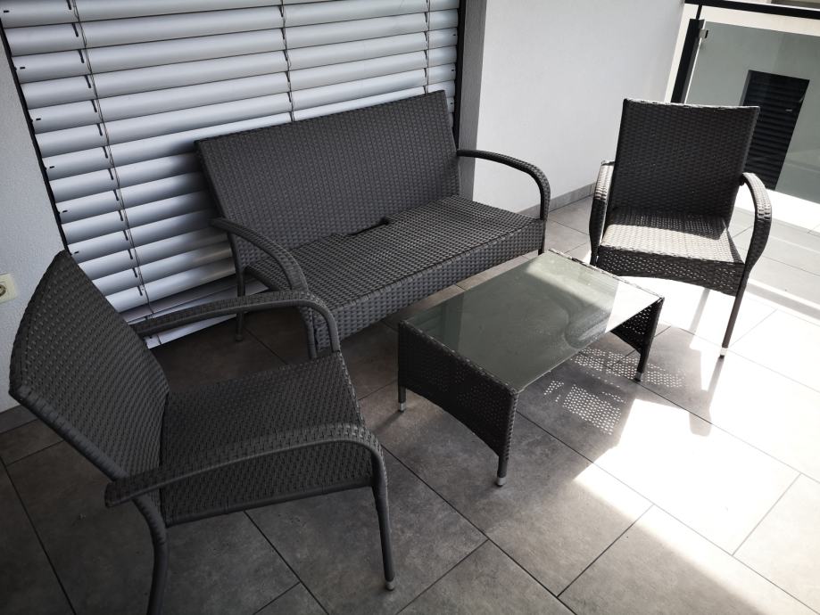 Prodam vrtno garnituro ZELO lepo ohranjeno in malo rabljeno. Zraven so še blazine za stole in klop, brez madežev in raztrganin. Garnitura je bila vedno pod streho na suhem.
